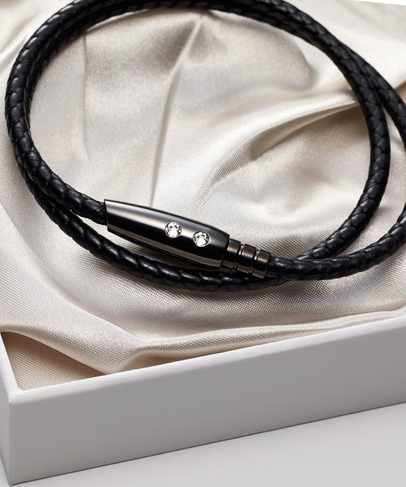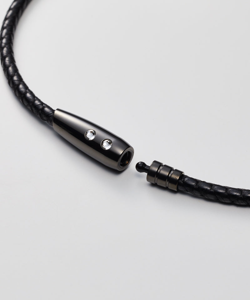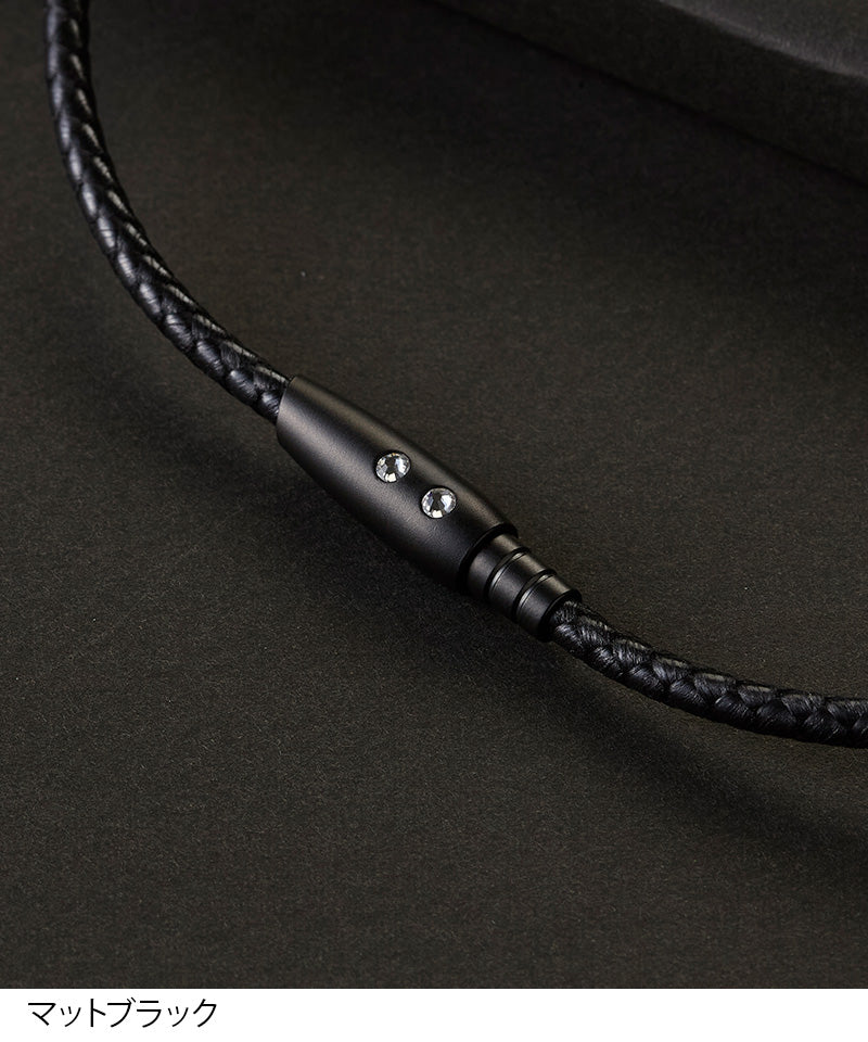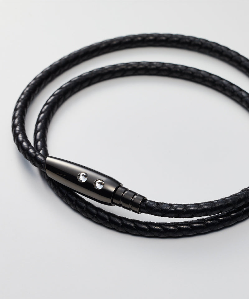 | 素材 | トップ:チタン、クリスタル ジョイント:ステンレス 紐:QUARTZコード+人工皮革 |