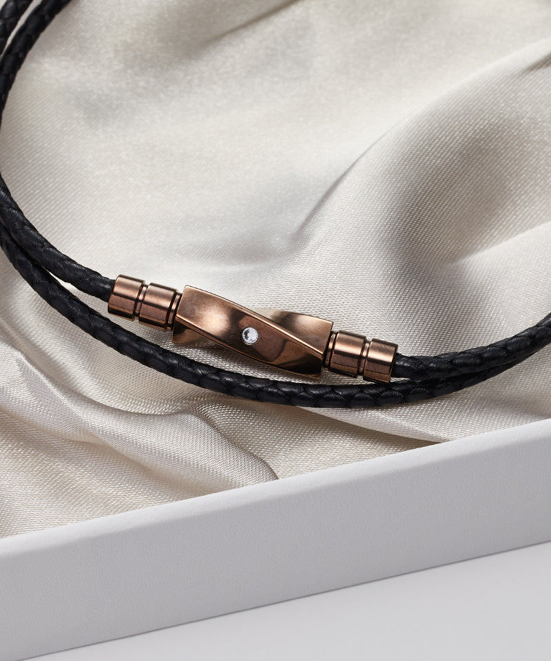| 素材 | トップ:チタン、クリスタル ジョイント:ステンレス 紐:QUARTZコード+人工皮革 |